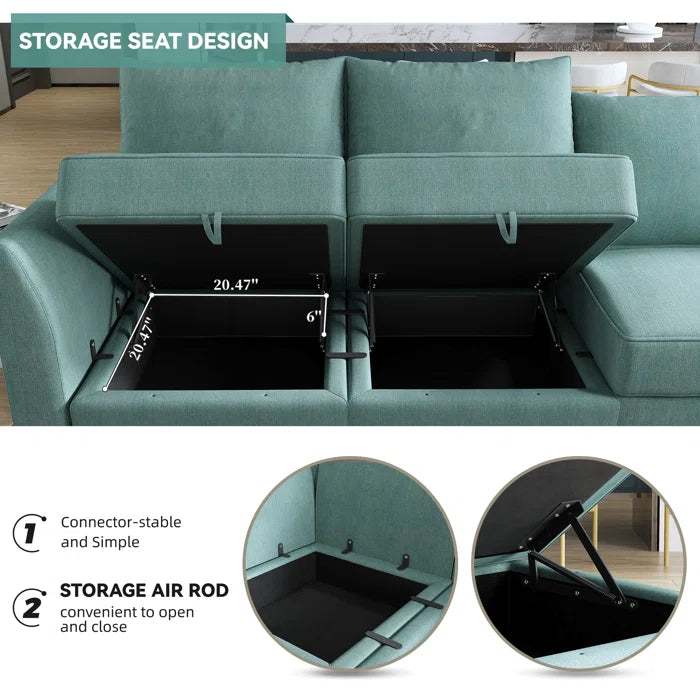 With its soft seat, sleek design, and roomy profile, this sectional sofa couch is like a sanctuary for peaceful relaxation and makes a stylish statement in any modern home. It features a strong frame made of both manufactured and real wood, 100% polyester fabric, and a premium sponge within. Additionally, the cushions may be easily cleaned because they are detachable. Many people can sit comfortably on the roomy chairs. The value of this sofa is reflected not only in its unexpected appearance but also in its large and fluffy sponge and its delicate and skin-friendly polyester fabric. With the ability to easily combine and shift each module's invisible storage space, even a tiny space may accommodate a variety of purposes.