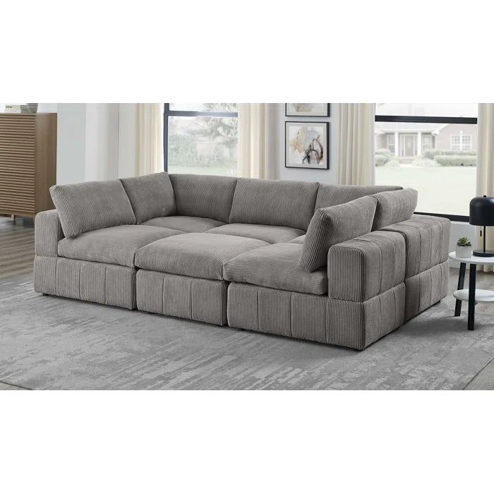 L-Shape and U-Shape Sectional Sofa: 6 - Piece Corduroy Sectional(Light Gray Corduroy)