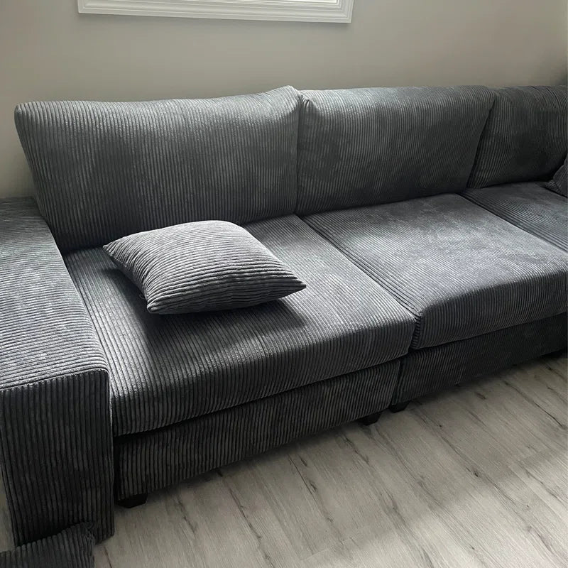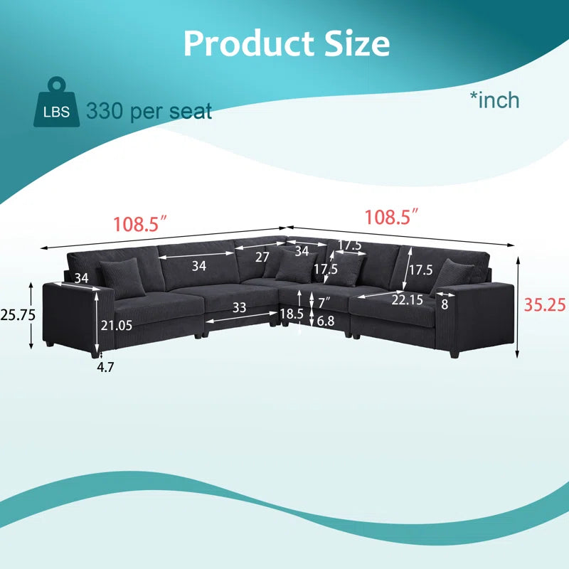 L Shape Sectional Sofa: 108.5"W Corduroy Upholstered 5 - Piece Sectional Sofa(Drak Gray Corduroy)