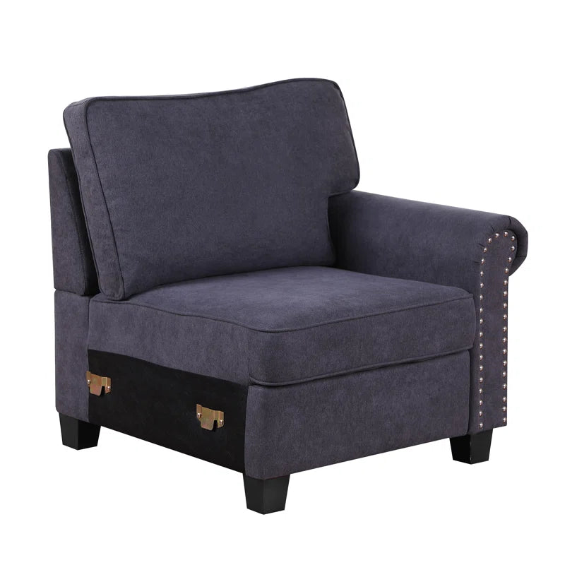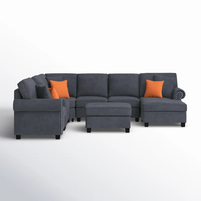 With this 7-piece modular sectional, you can create a cozy and inviting space for entertaining. Additionally, because it is reversible, you can arrange it to best fit your space. We adore the classic design features that give this sofa its timeless appeal, such as the nailhead trim and the rolled arms. The frame features a hand-tied spring construction for comfort and support, and it is constructed from a combination of engineered and kiln-dried solid wood. The detachable back cushions are upholstered in neutral-colored, easy-care polyester and wrapped in foam. This sectional is finished with an ottoman and six throw cushions.