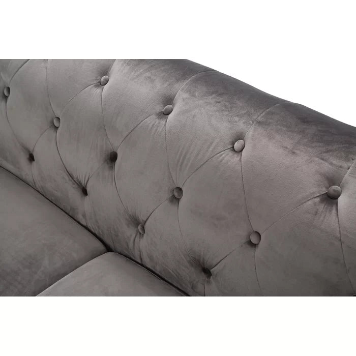 A unique focal point for your living area, this reversible couch and chaise lounge combines glam touches with traditional influence. For a striking contrast, it features a sturdy, engineered wood frame supported by chrome-finished steel legs. For a luxurious appearance, this sectional is completely covered in velvet upholstery. In addition, it features round arms, button tufting, cushions packed with foam, and pocket springs in the seats for added comfort during movie marathons or social gatherings. This couch comes in a variety of solid tone selections so you may match it to the color scheme of your current space. There are also two throw pillows provided.