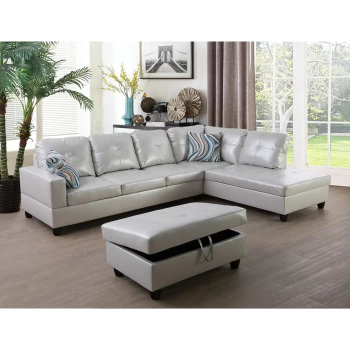 L-Shape Sectional Sofa: 3 - Piece Faux Leather Sectional(Silver Light Gray)