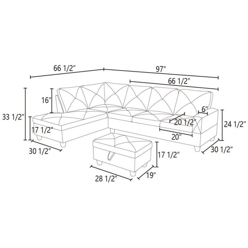 - Overall: 33.5'' H X 97'' W X 31'' D