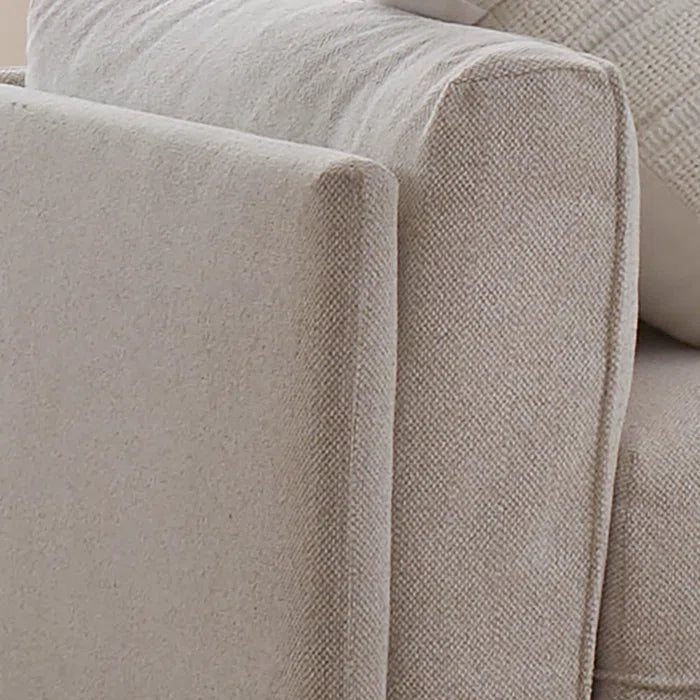 Designed to blend in with any area, this modular corner sectional provides a flexible seating option for your living room. This sectional is a terrific place for movie evenings or family get-togethers because of its symmetrical, L-shaped design, which comfortably accommodates five people. It is comfy with square armrests and a pillow back, and it is upholstered in soft, off-white polyester. A contemporary feel is added to your decor by the strong and engineered wood frame and solid wood legs. Furthermore, a comforting and soothing feeling is offered by the deep-seated design and sinuous springs. Cleaning and rearranging are made easier with the detachable seat cushions.