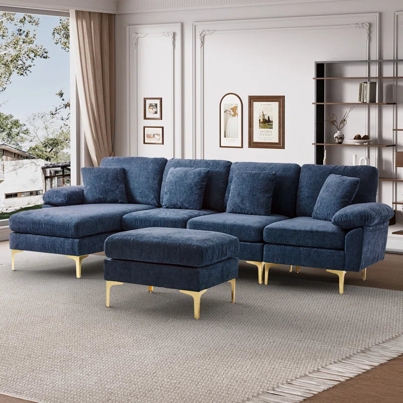 L-Shape Sectional Sofa: 4 - Piece Upholstered Sectional with Ottoman(Dark Blue Chenille)