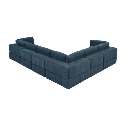 L-Shape Sofa: 6 - Piece Corduroy Sectional(Dark Blue Corduroy)