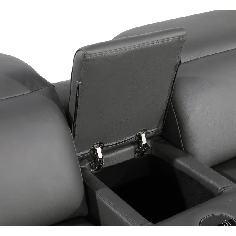 L-Shape Sectional Sofa: 7 - Piece Top Italian Grain Leather Power Reclining Sectional(Dark Gray Genuine Leather)