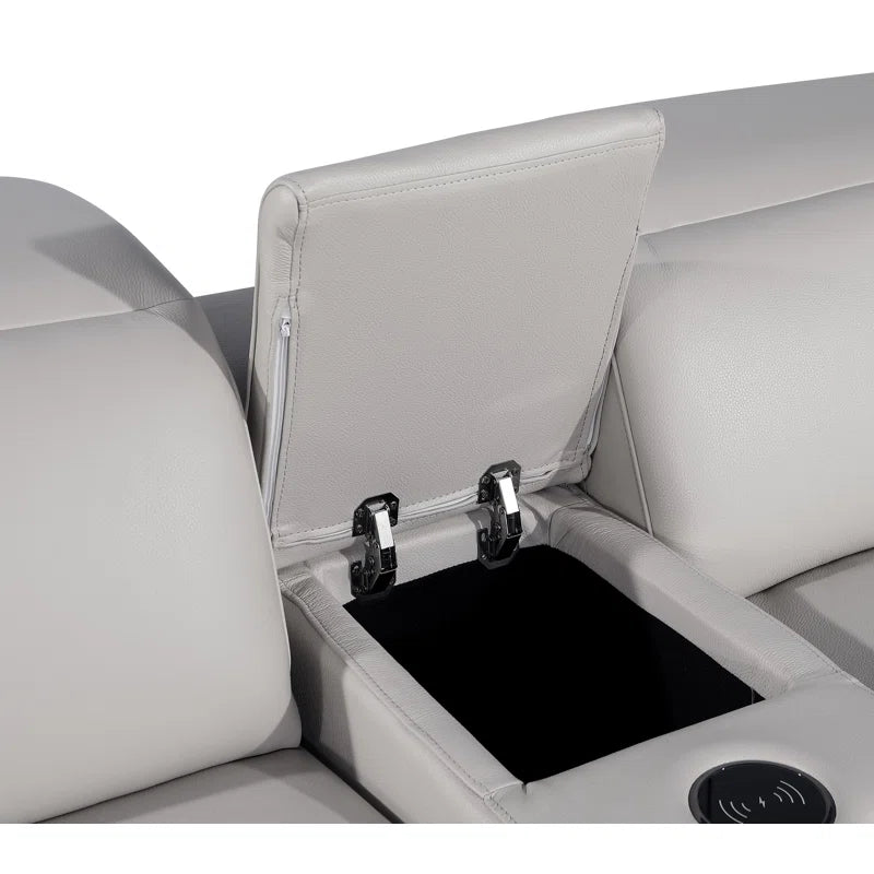 L-Shape Sectional Sofa: 7 - Piece Top Italian Grain Leather Power Reclining Sectional(Light Gray Genuine Leather)