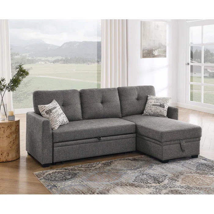 This L-shaped pull-out sleeper sectional is perfect for giving a comfortable, relaxed feel to a variety of locations. Because of its produced wood frame construction and linen upholstery in any neutral color, it may be easily combined with a wide range of color schemes. In addition to two throw pillows with tufted back cushions, this sofa has medium-firm seat cushions and soft back cushions. The best part is that the chaise has lift-up storage within, so you can prepare extra blankets, pillows, and sheets for your guests who are visiting from out of town.