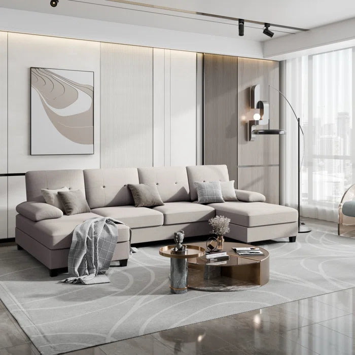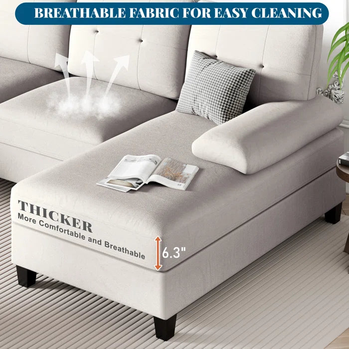 U- Shape Sectional Sofa: 106" Modular Upholstered Sectional 3-Piece Sectional for Living Room(Beige Cotton Blend)