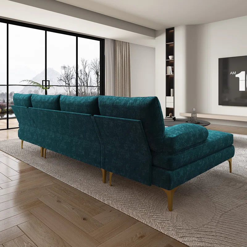 U-Shape Sectional Sofa: 110.6" Wide 3-Piece Upholstered Sectional with Chaise Longue(Teal Chenille)