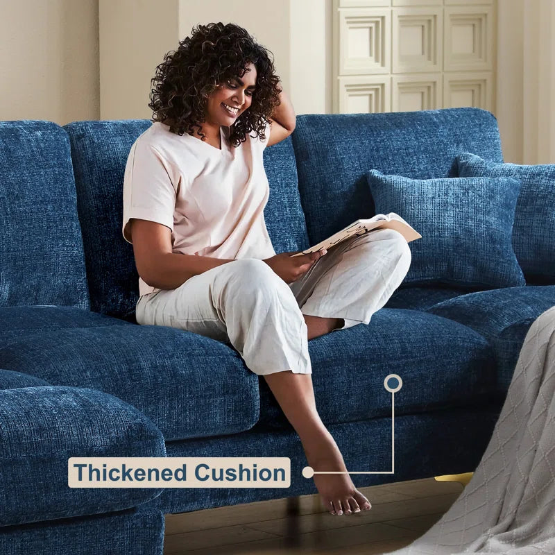 - Ultra Comfort: High-density foam is filled into a tufted seat cushion to create a cloud-like softness. Four more pillows and thick backrests give your body great support. This living room sectional couch, which is covered in breathing chenille fabric, promotes mental and physical relaxation.