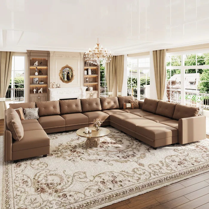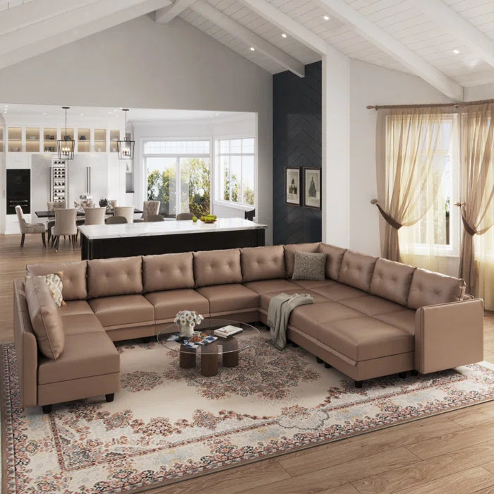 U-Shape Sectional Sofa: 14 - Piece Upholstered Sectional Sofa(Brown Faux Leather)