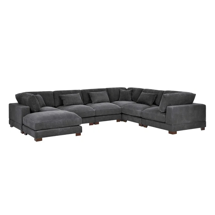 U- Shape Sectional Sofa: 7 - Piece 144" Wide Modular Corner Sectional(Gray Corduroy)